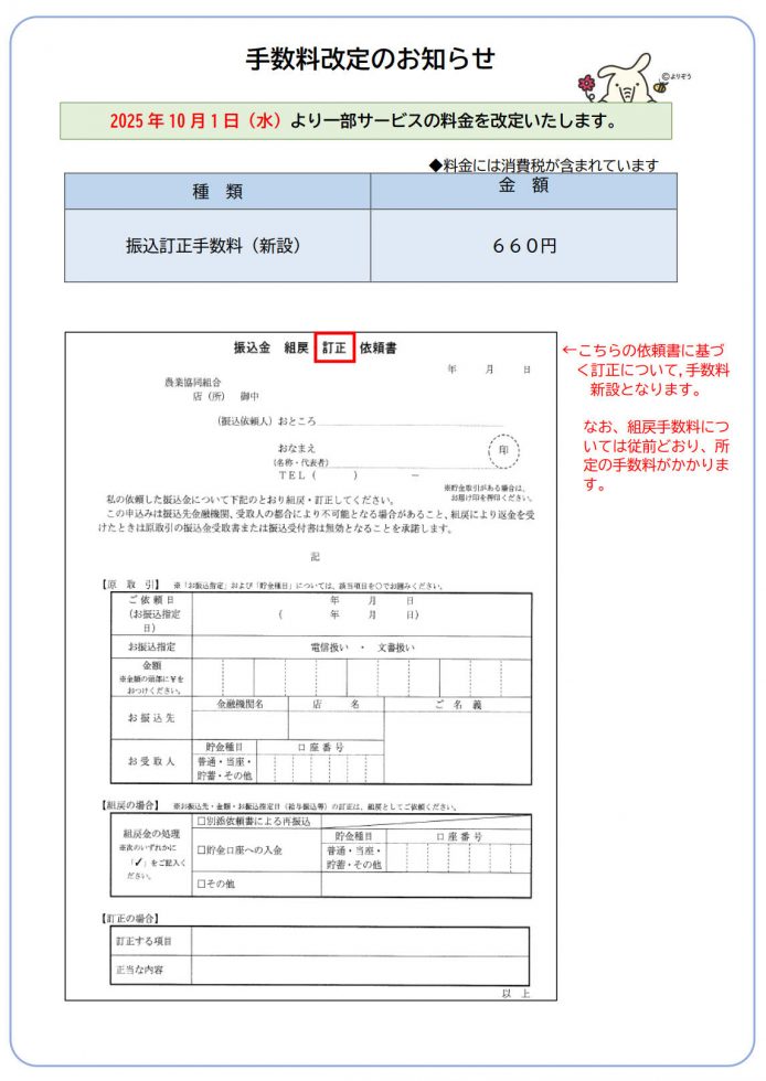 2025.10.02 手数料改定のお知らせ
